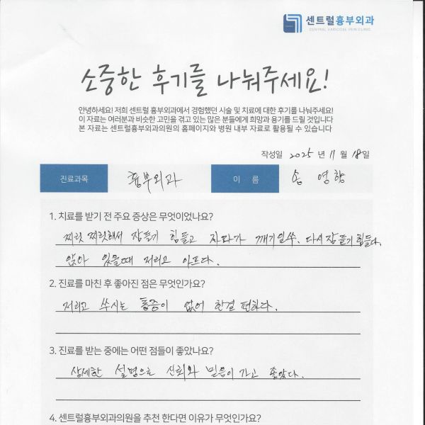 "모든 수술은 국소마취와 반수면마취로 안전하게 진행합니다."